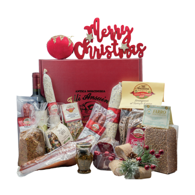 Cesto regalo GOLD, un’ottima idea regalo con Prodotti Tipici Umbri, in particolar modo della tradizione Nursina.