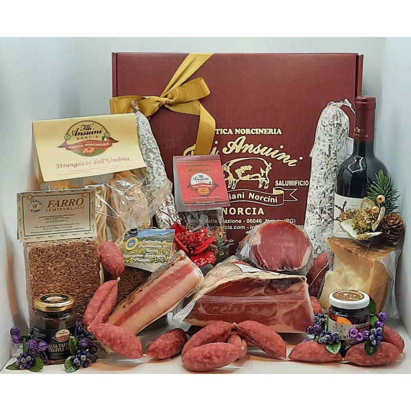 Cesto regalo MONTE SIBILLA, un’ottima idea regalo con Prodotti Tipici Umbri, in particolar modo della tradizione Nursina.